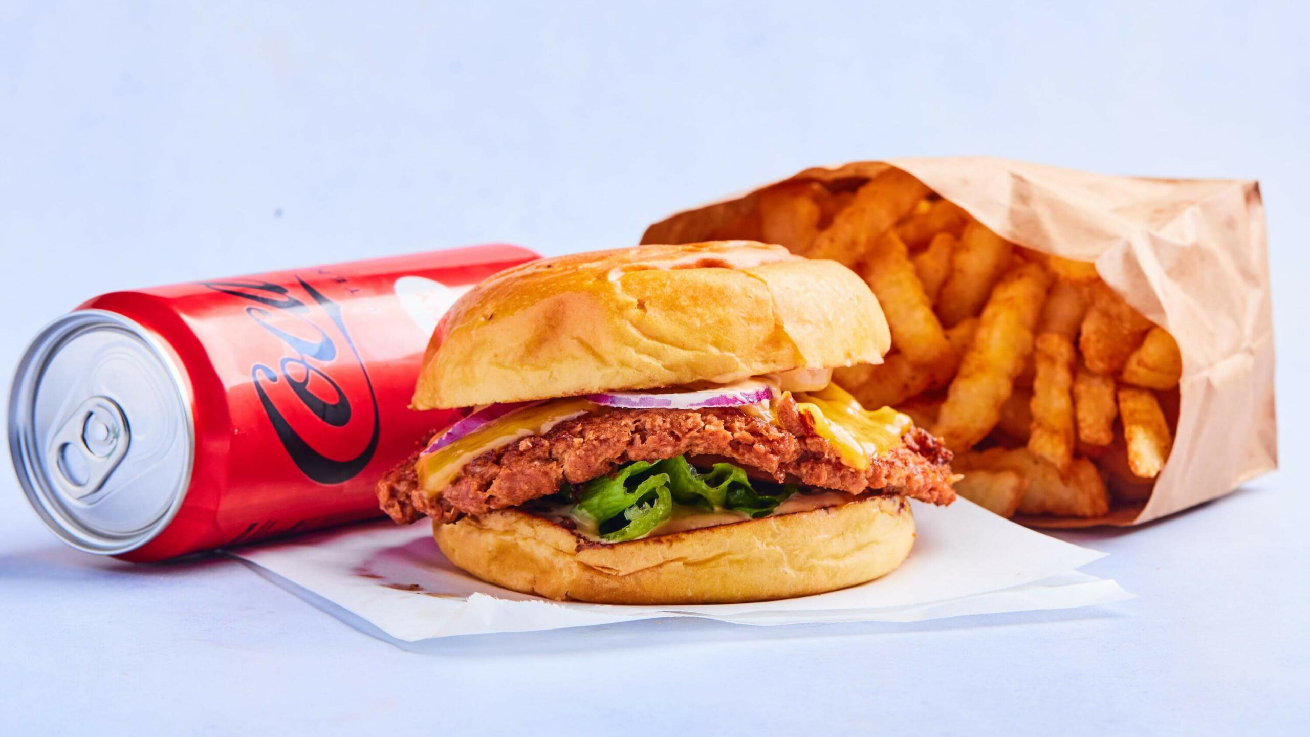 Gunshot dressing, spring onion, pickled red onion & crisp lettuce The deal includes riffle cut fries & soda