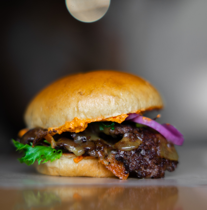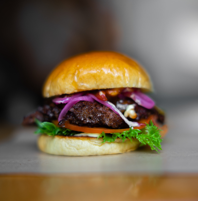 Bernaisemayo, sun-dries tomato, caramelized onions, cheddar & pickles.
