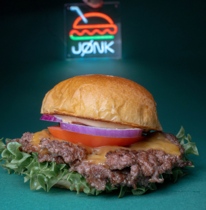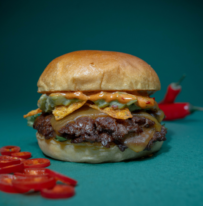 House dressing, caramelised onions, pickled red chili & Naturli´ patty with cheddar cheese