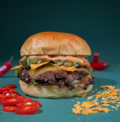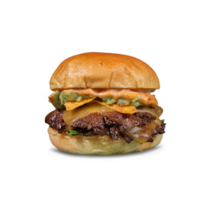 Chipotle mayo, pickled red chili, salsa, guacamole, lettuce, tortilla chips & cheddar cheese The deal includes riffle cut fries & soda